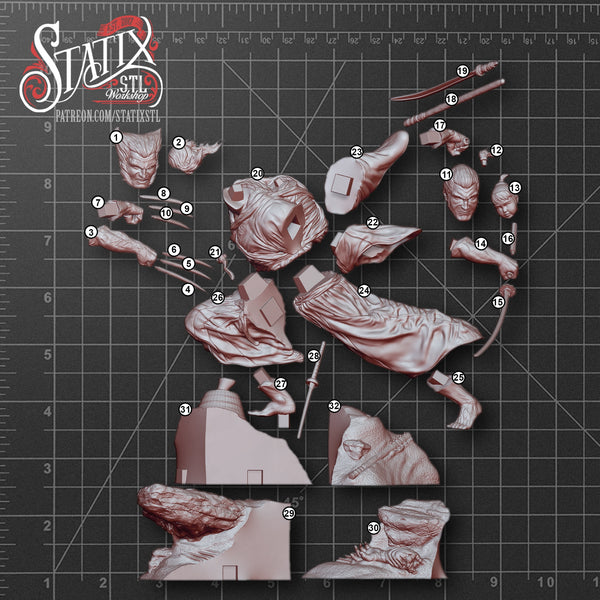 MAN161 - Legendary Character design, Wolverin Samurai outfit ,3d STL resin print download files